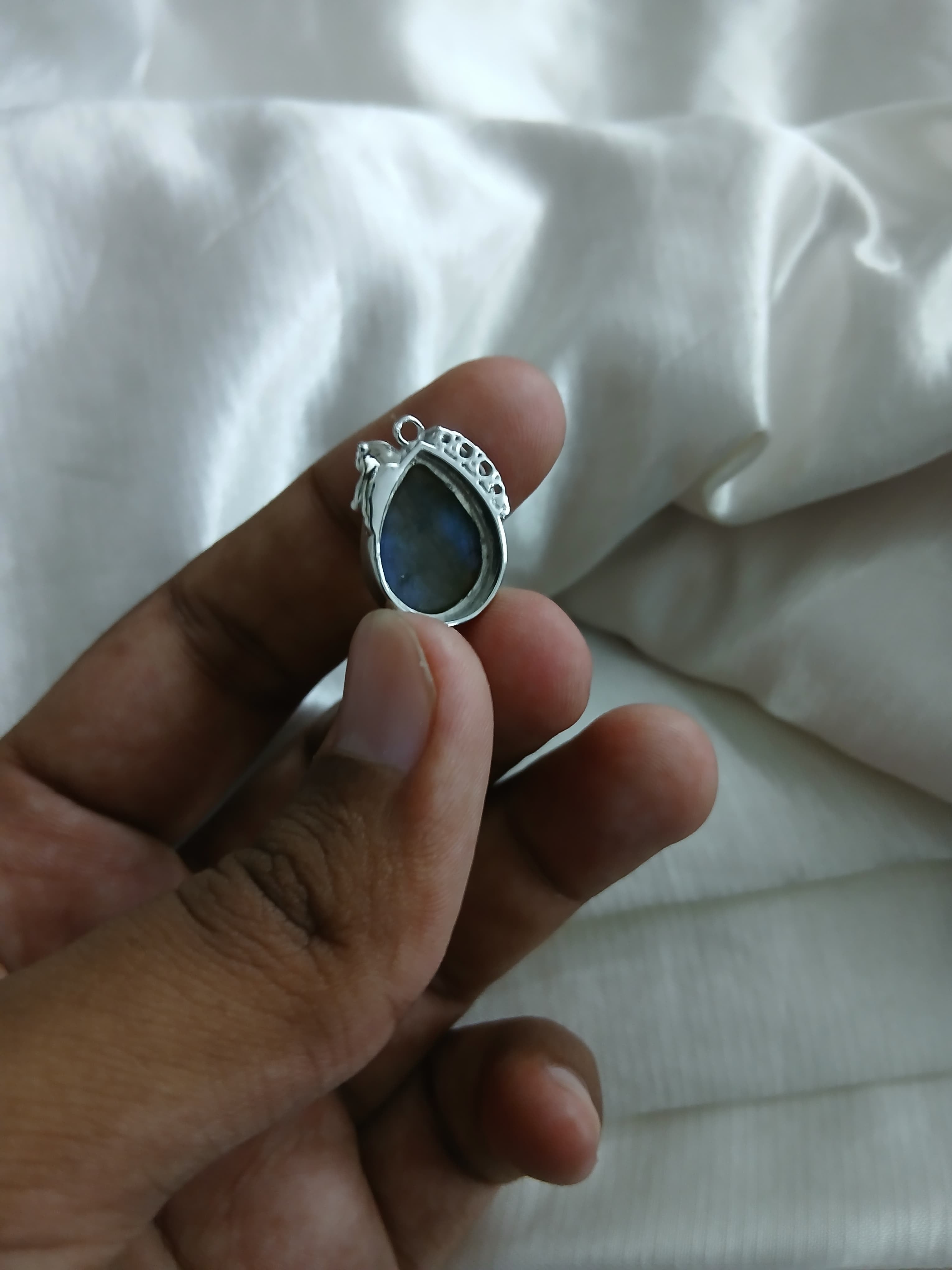Every labradorite stone is chosen and placed by hand. Each bear is individually crafted, soldered, polished, and reviewed through a process that honors skill, presence, and intention. The finished piece reflects the hands, focus, and care of the people who created it.